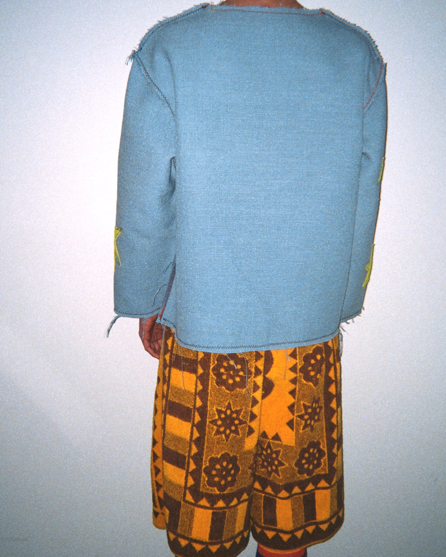 •reworked upholstery fabric, crafting felt, varsity letters •made of preexisting material •100% unknown fibre •1 of 1 wearable artwork •designed by artist Danny Welsh