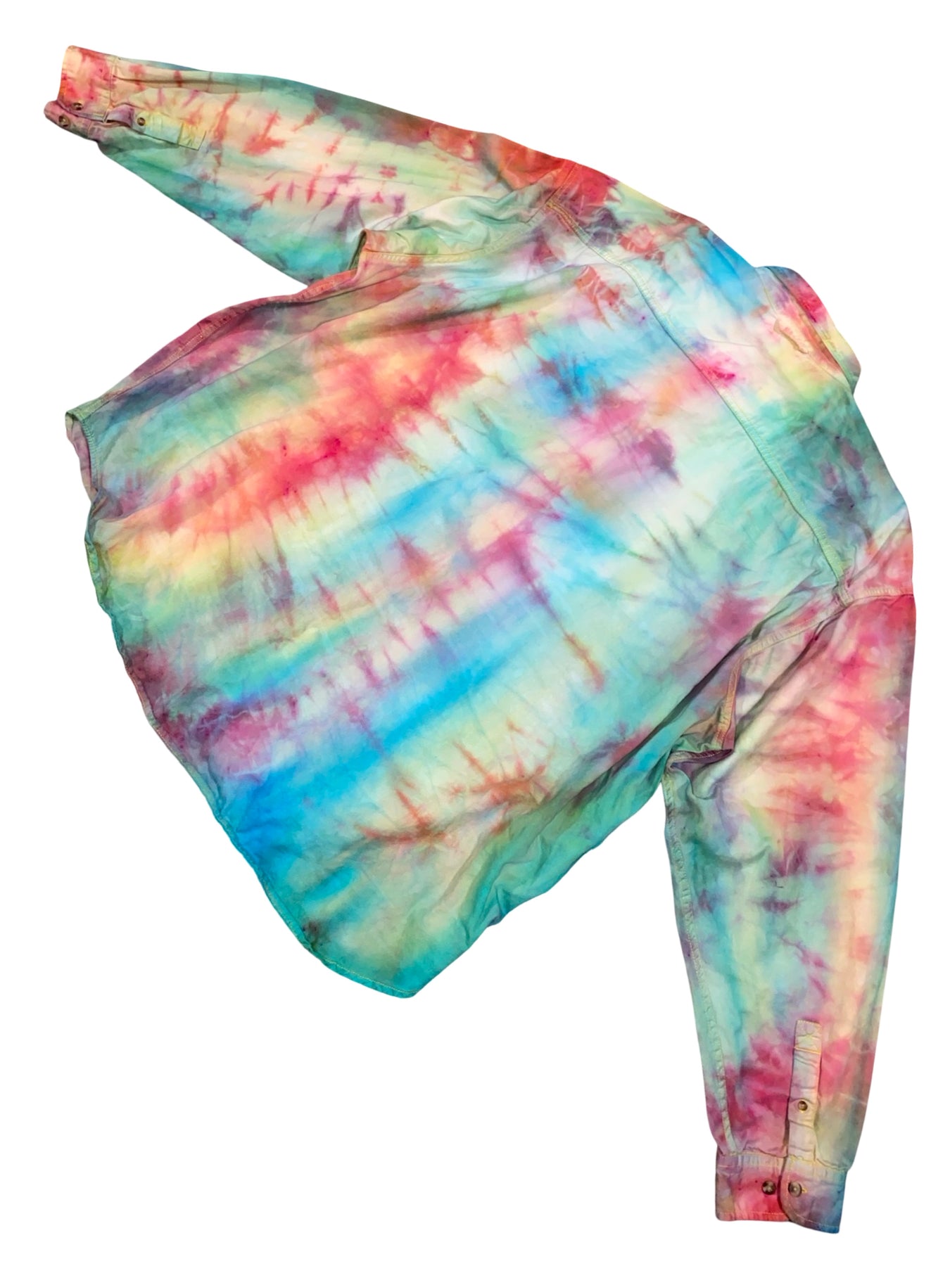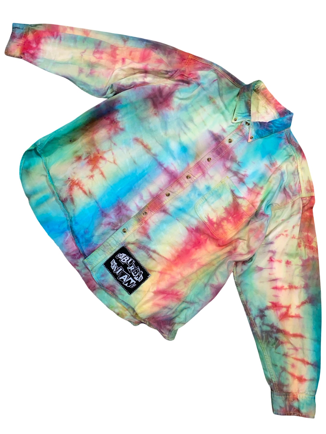 •tie dye men’s button down shirt featuring Suburban Deviant woven label
