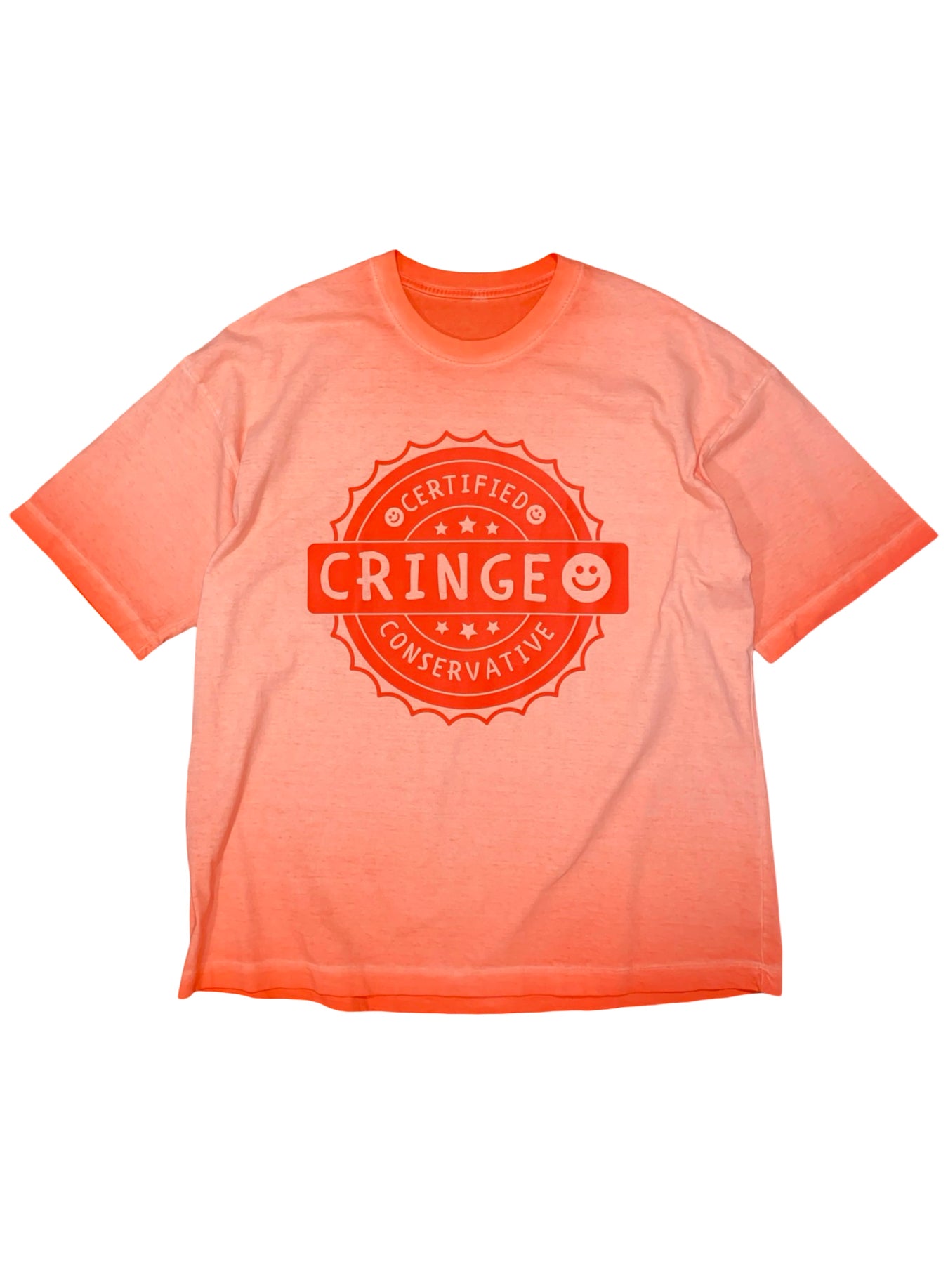 •sun bleached tangerine colour boxy tee featuring custom graphic •made of preexisting material •100% cotton •1 of 1 wearable artwork •designed by artist Danny Welsh