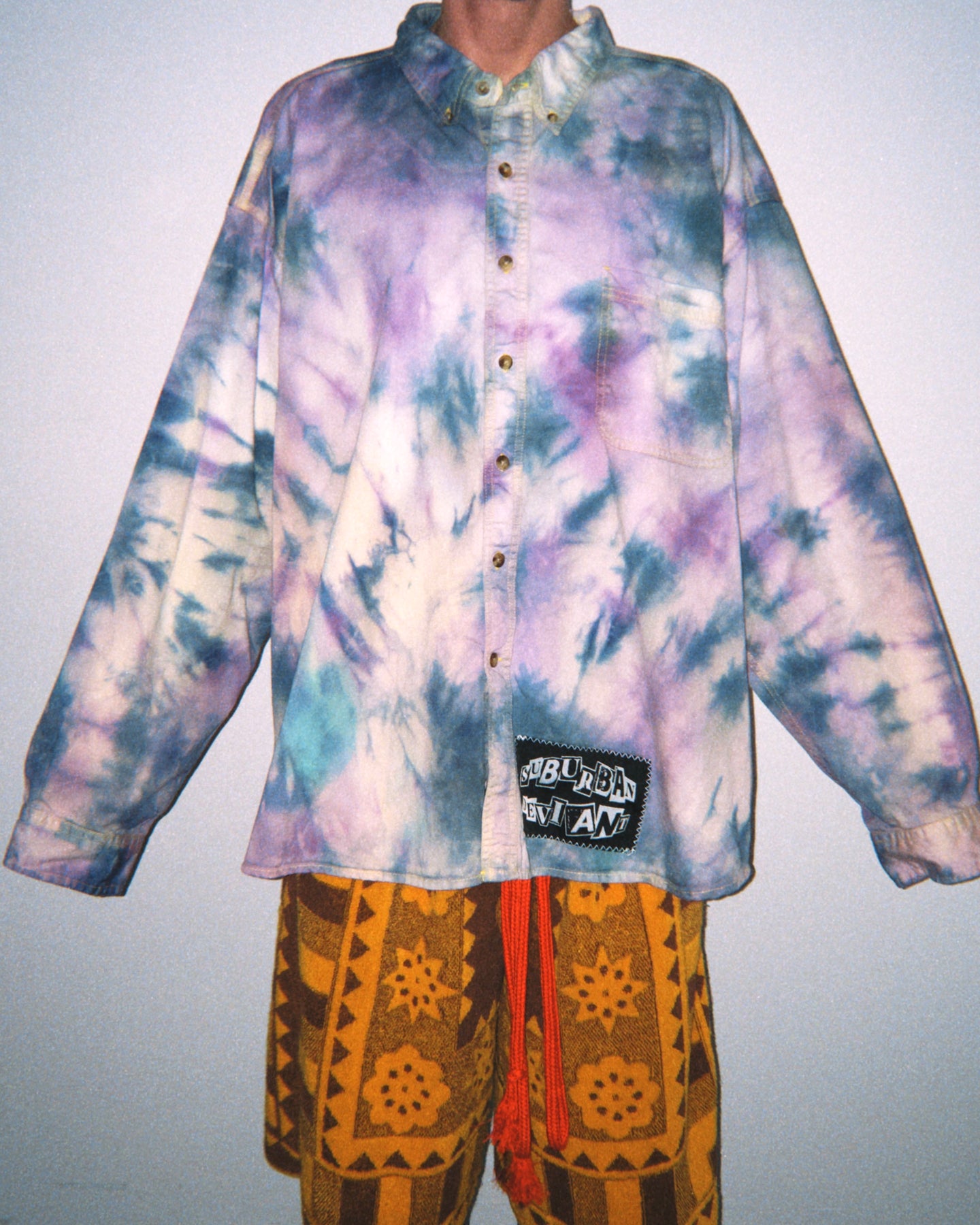 •tie dye men’s button down shirt featuring Suburban Deviant woven label